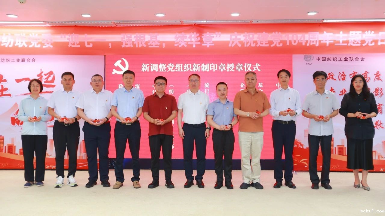 10位新调整党组织代表接过中国纺联党委副书记、会长孙瑞哲代表党委授予的新制党组织印章。