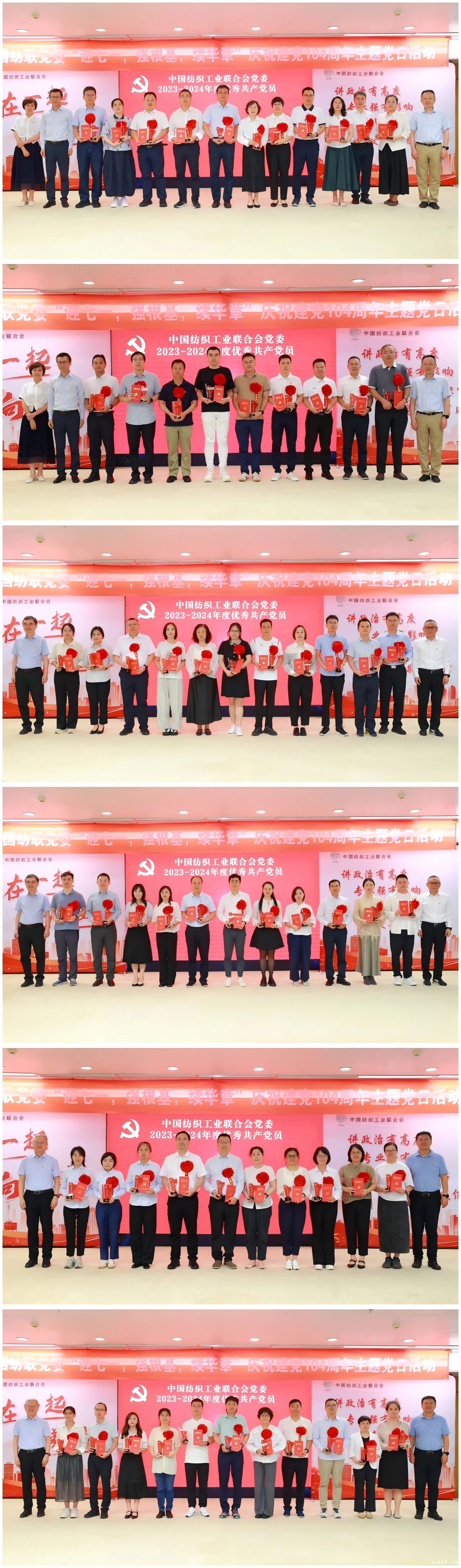 为庆祝中国共产党成立104周年,进一步引领广大党员、职工加强党性修养、改进工作作风,6月30日,中国纺联党委“迎七一,强根基,续华章”庆祝建党104周年主题党日活动暨2023—2024年度“两优一先”表彰大会隆重举行。活动紧扣传承纺织精神、传递优良作风的主题,精心设计活动内容。中国纺联党委副书记、会长孙瑞哲面向中国纺联全体党员讲专题党课,激励大家坚定理想信念,以新作风展现新担当取得新成绩。会上对2023—2024年度“两优一先”进行了表彰,介绍了获颁2025年“光荣在党50年”纪念章的党员情况,还开展了新党员入党宣誓、新调整党组织授章仪式、“两优一先”代表交流发言等活动,进一步深化了主题,使党日活动更加丰富多彩。