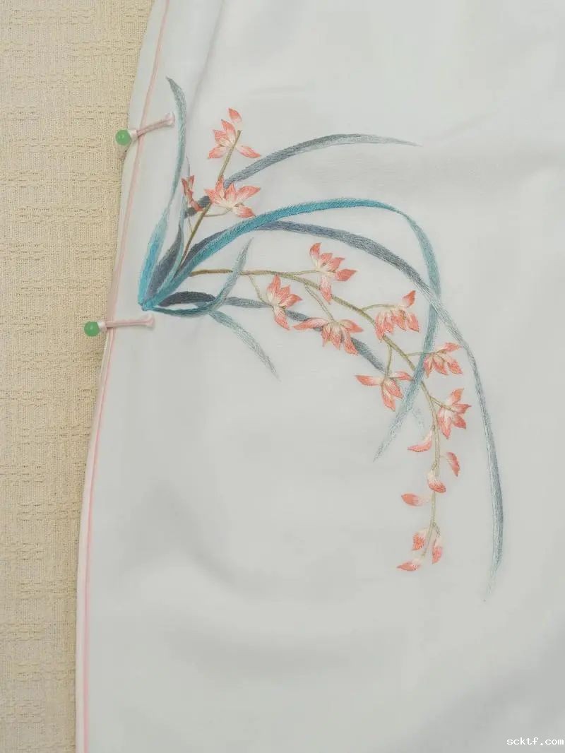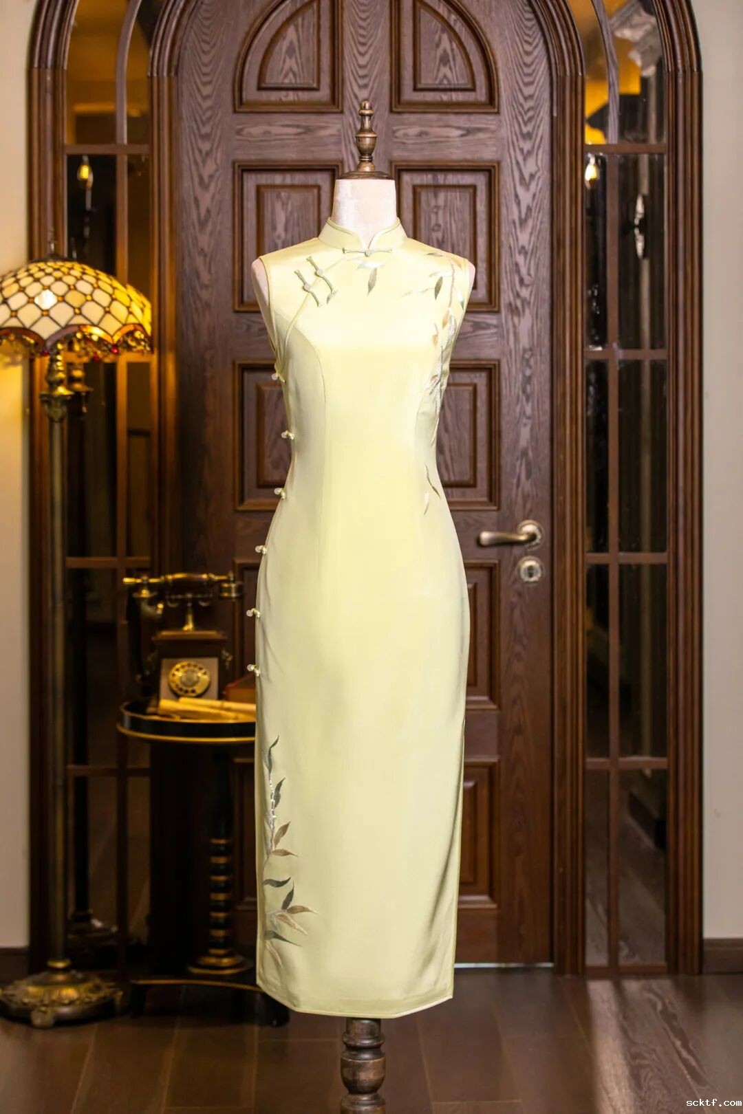 这一时期,旗袍款式的变化得到了长足发展。勤劳聪明的绣娘,把清代满幅繁杂、多层次的大小绣花精炼后重新安排组合,绣在改良旗袍的显眼部位上,使旗袍更增强了高贵与华丽;此时流行的旗袍,更强调滚边修饰,用线条来加强凸现东方女性的曲线美,用花草鸟兽等各色多样的盘纽,为旗袍画龙点睛,使其更富雍容典雅的气质。