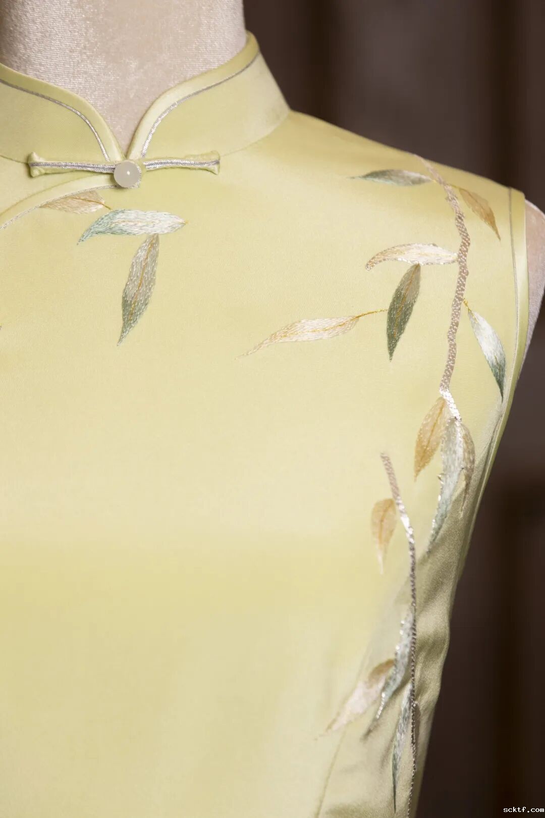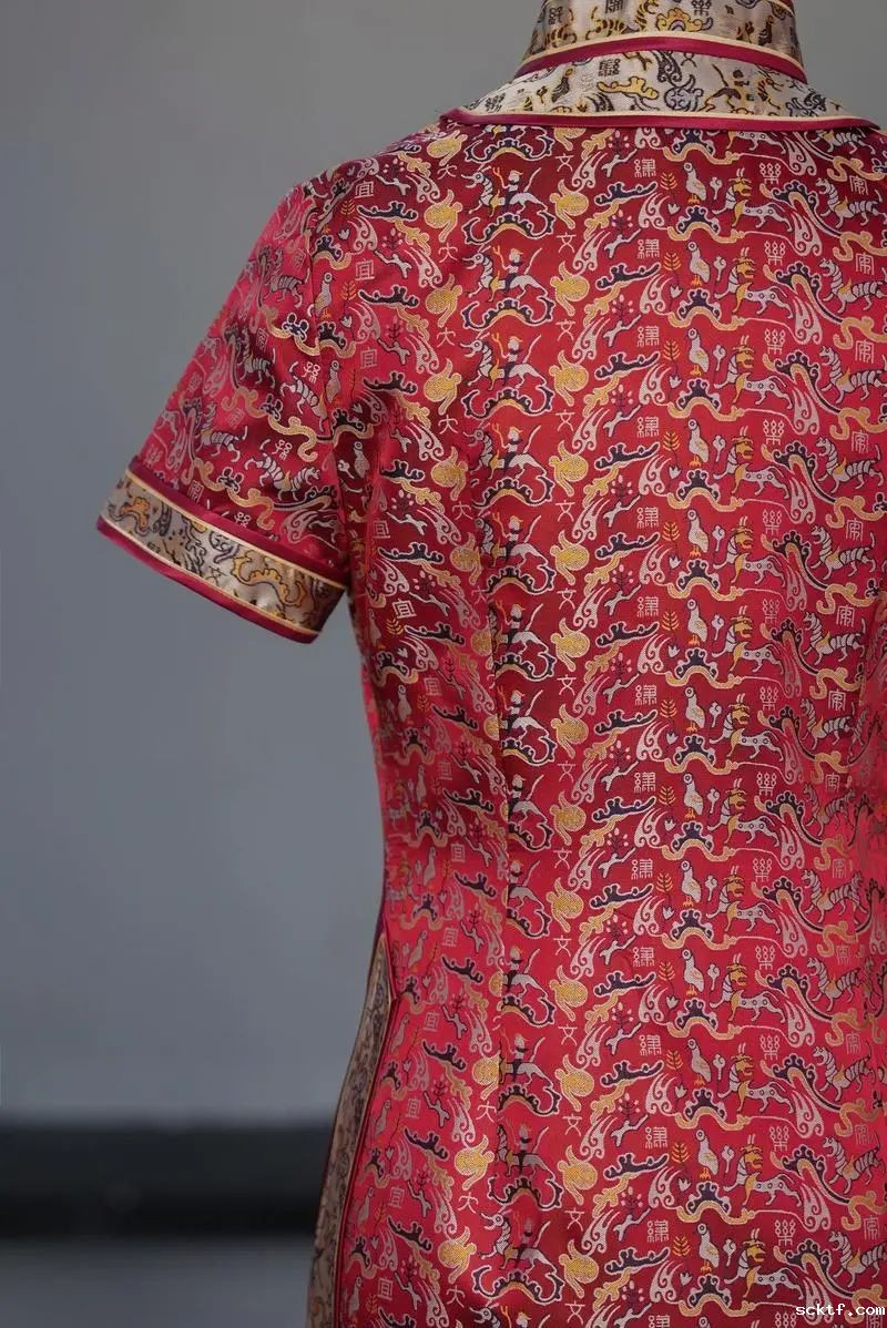 在做工方法上,旗袍也逐渐形成了立体造型制作体系:如衣片上出现了省道,腰部裁剪更为合体并配上了西式的装袖,旗袍的衣长、袖长则大大缩短,腰身也更为讲究,出现了开襟、半开襟、立领盘纽、摆侧开衩、单片衣料、衣身连袖、平面裁剪等制作工艺。