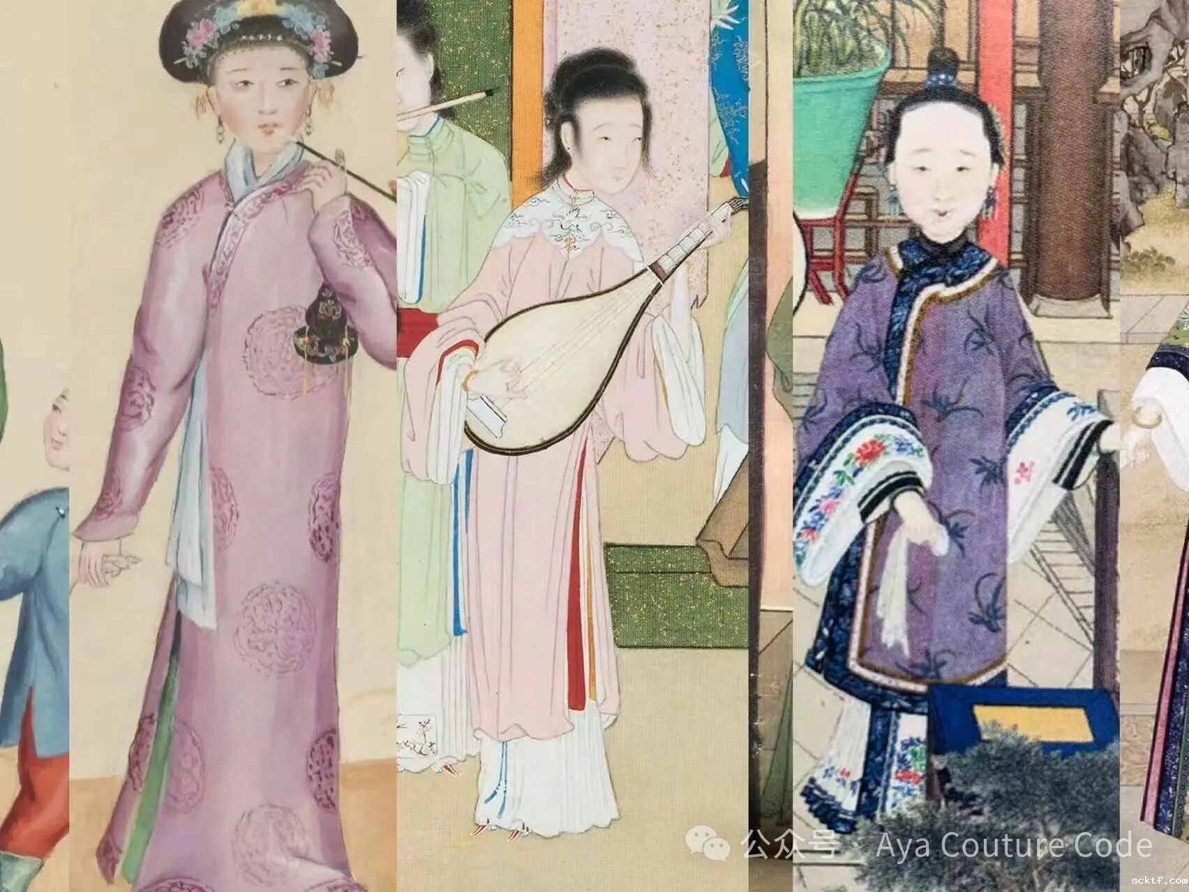 清代旗装(1644-1911):采用直线裁剪,胸肩腰臀平直,以“十八镶”滚边装饰为特色,纹样多采用龙凤、百鸟、花卉等吉祥图案,通过繁复的盘滚工艺掩盖女性曲线,体现封建礼教对身体的束缚。