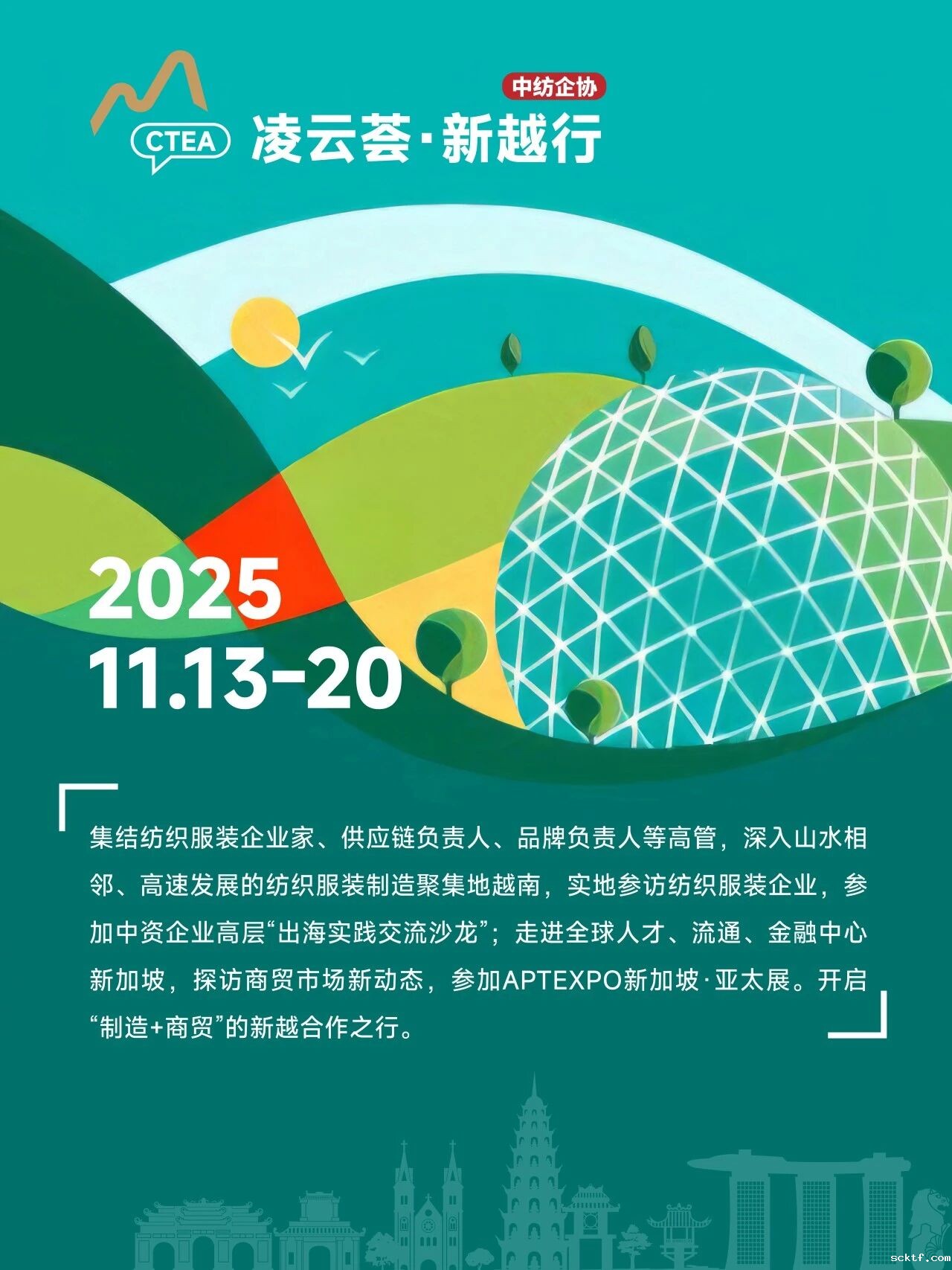 这将是一场深度与视野并举的商务之旅。深入越南胡志明市与河内,我们直击纺织服装产业脉搏,在生产线与对话间探寻合作新机,感受“世界工厂”的活力。移师新加坡,亮相亚太展会,把握前沿趋势,链接全球商机。让我们与时尚同行、与历史对话、与商机邂逅,同享区域合作红利,共筑产业美好新未来!